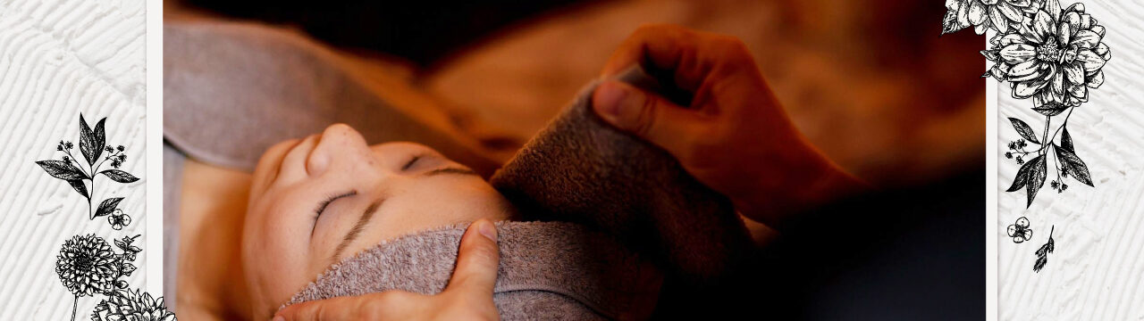 【フェイシャル】デコルテ、背中、首肩、頭皮までやさしく流したあとに、お顔の反射区を整え、フェイスラインや目元のたるみ、毛穴など年齢肌のお悩みにアプローチします。